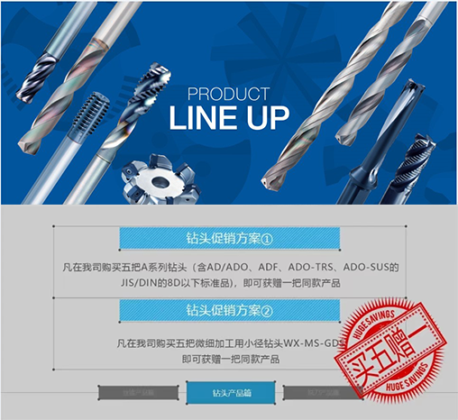 鉆頭促銷對象1:A系列鉆頭是OSG兼顧刃尖剛性和切削阻力,推薦適用于廣泛加工材料的硬質(zhì)合金鉆頭系列。此次促銷包含通用性鉆頭、平頭鉆、三刃鉆及不銹鋼專用鉆頭產(chǎn)品。