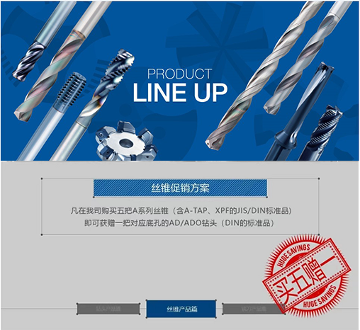 絲錐促銷對象:A絲錐是我司具有代表性的高通用性高速鋼絲錐系列產(chǎn)品,能適應(yīng)各種加工材料和加工環(huán)境,并能幫助制造商簡化工具管理。